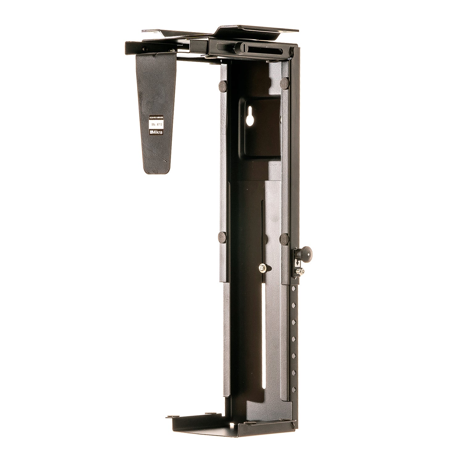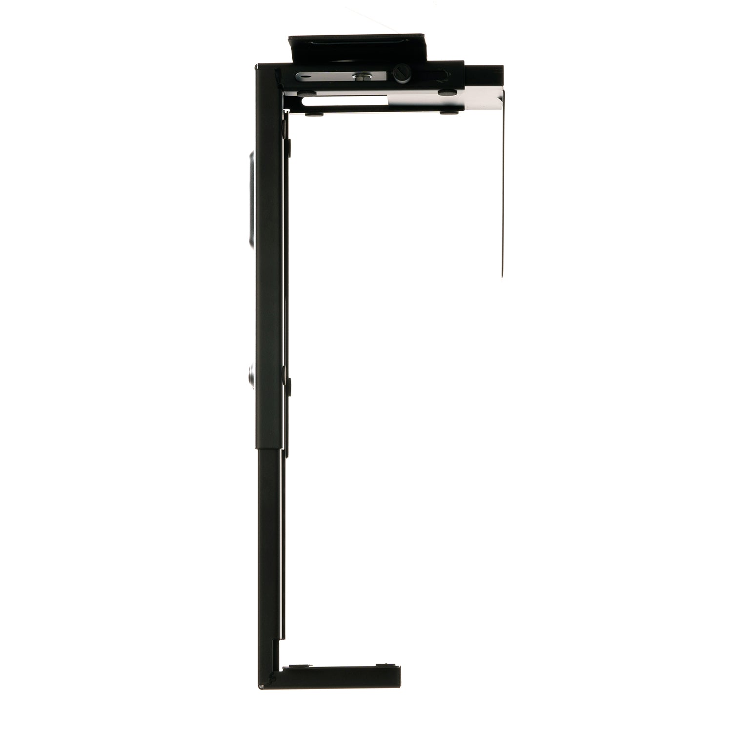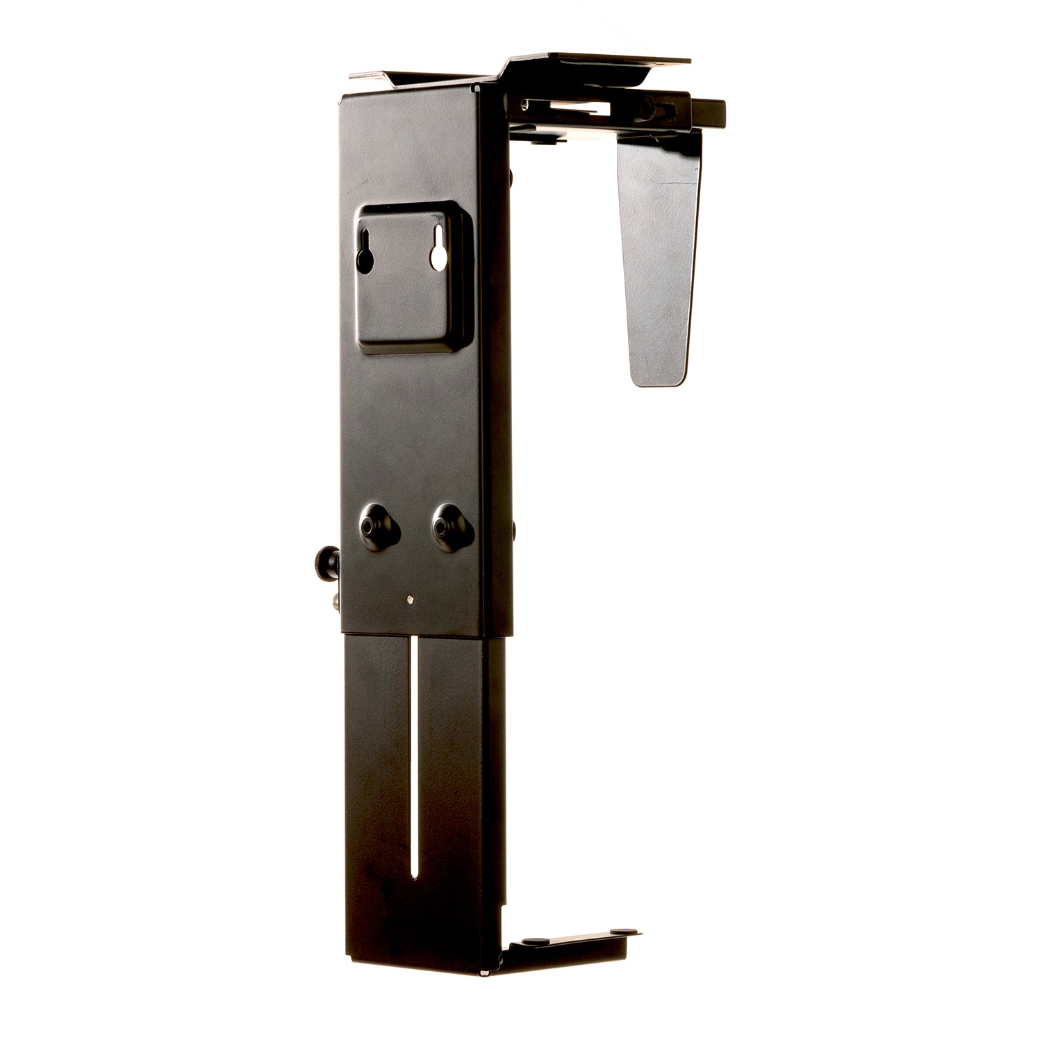 Soporte de gabinete de computador, Porta CPU, Regulable para instalación bajo cubierta o fijación lateral. Permite regulación en la altura y ancho y la rotación vertical del soporte en 360° en el caso de fijación a cubierta. Pintura electroestática color negro.